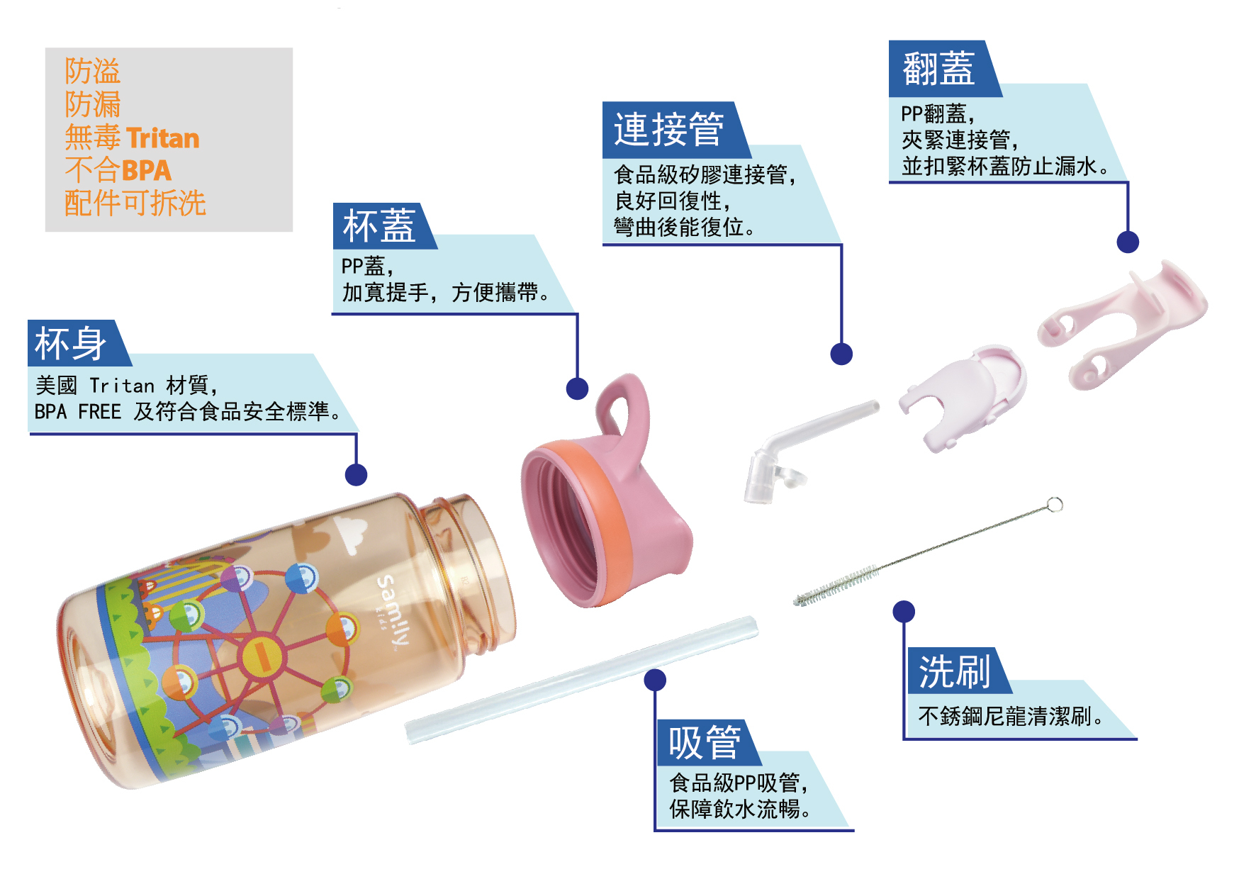 1.此水樽並非設計用於攜帶高溫液體,攝氏40度或以上的液體可能會從吸管中噴出, 更可能會導致口腔灼傷。