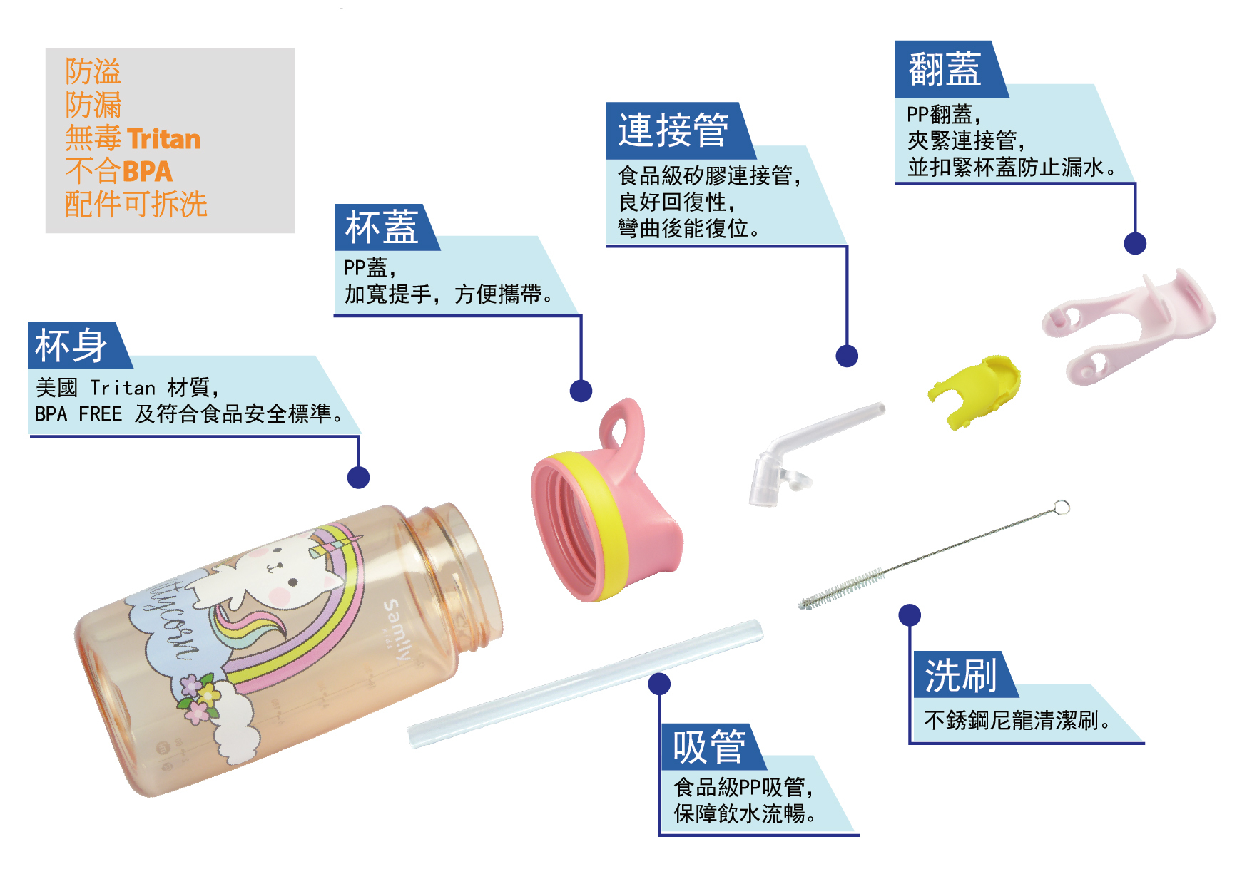 1.此水樽並非設計用於攜帶高溫液體,攝氏40度或以上的液體可能會從吸管中噴出, 更可能會導致口腔灼傷。